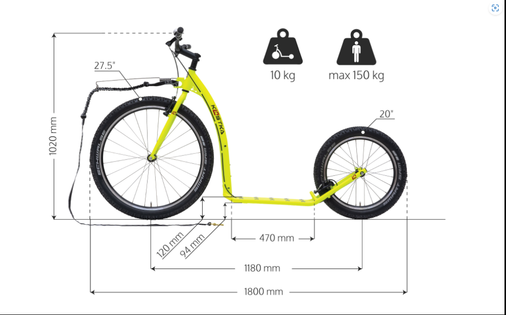 Der Kostka Mushing Racer Fun G6 Tretroller mit 27,5/20"-Rädern ist der ideale Begleiter für aktive Fahrten mit Ihrem vierbeinigen Liebling im Gelände. Dieser Tretroller wird mit einem Adapter und einer flexiblen Leine geliefert, so dass Sie Ihren Hund bequem anschirren und gemeinsam die Bewegung genießen können.