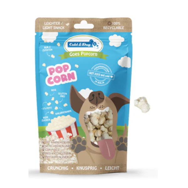 Cold & Dog "goes pop" knusprig lecker und so leicht wie ein Reiskorn. Was steckt drin? Reis aus ökologisch kontrollierten Anbau und Hähnchenleber - Das wars.