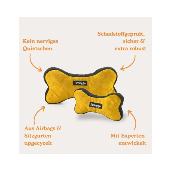 Unsere hohen Qualitäts- und Sicherheitsstandards sorgen dafür, dass Redoggo-Spielzeuge sehr robust sind. Bitte denkt aber daran, dass kein Hundespielzeug unzerstörbar ist.