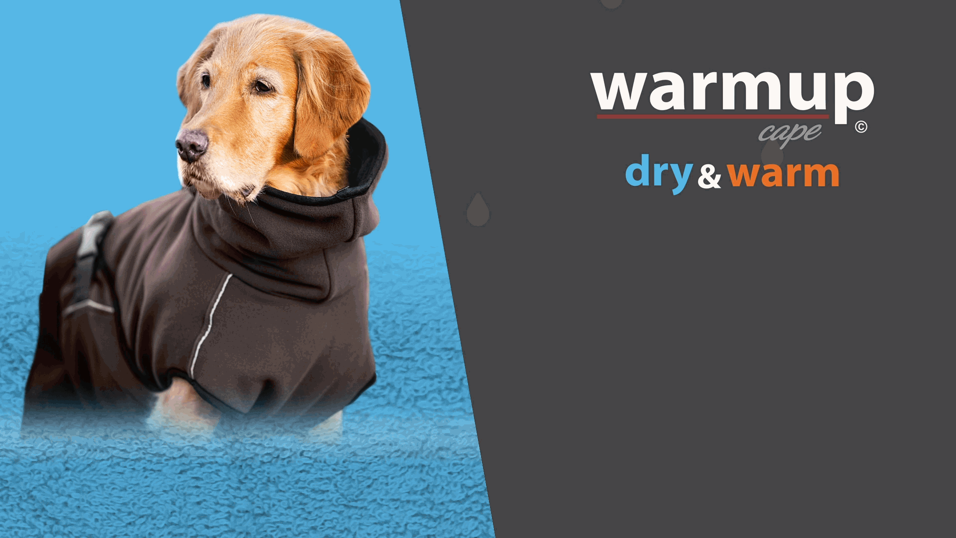 Das „Warmup Cape Pro“ hat einen angeschnittenen Bauchlatz und einen wärmenden Kragen, der auch die empfindliche Halspartie umschließt und wärmt. Darin sind die Hunde nach der Jagd, dem Training, dem Seminar oder der Prüfung gut eingepackt, wenn diese nass oder erhitzt im kalten Auto oder auf kühlem Untergrund liegen und warten müssen. So minimiert sich die Gefahr des Auskühlens und der Erkrankung!