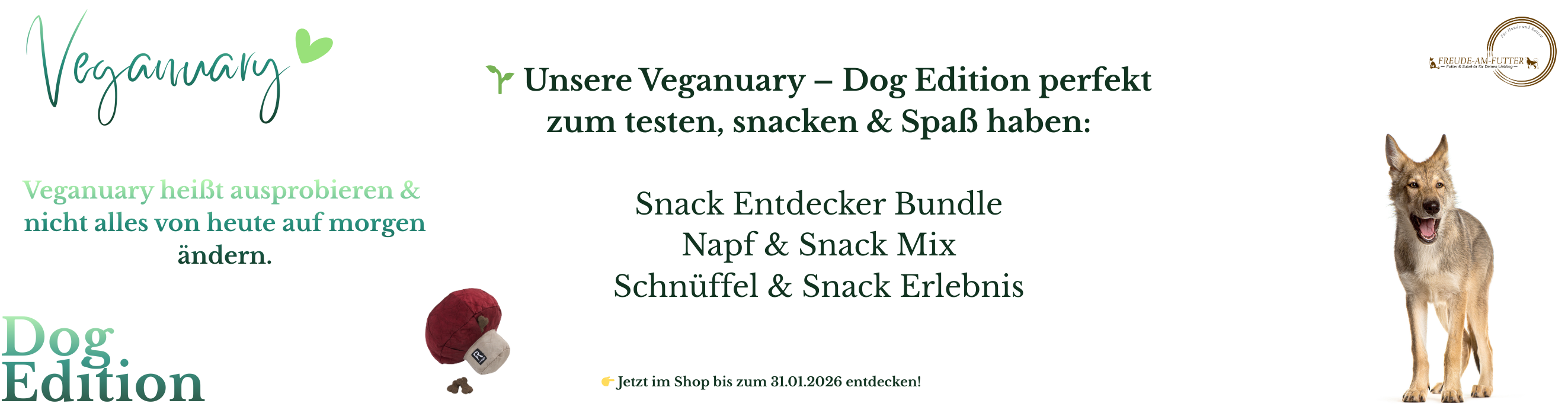 In unserer Veganuary – Dog Edition findest du sorgfältig zusammengestellte Bundles mit:
